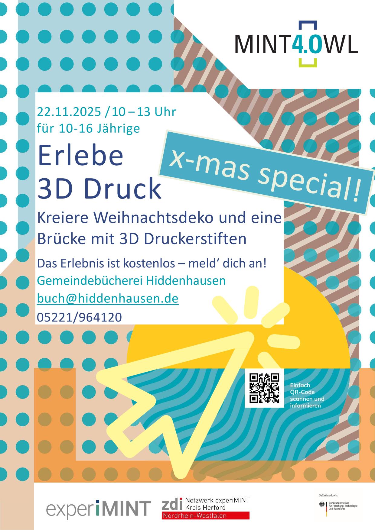 In der Weihnachtszeit kreieren wir in diesem MINT-Erlebnis auch 3D Weihnachtsdeko. Es sind keine Vorkenntnisse nötig.